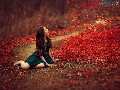 Puzzle Dróżka, Las, Liście, Kobieta