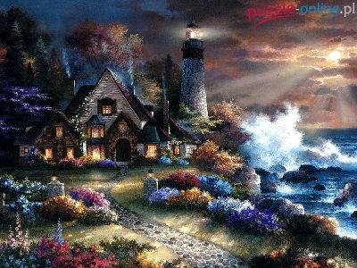 Dróżka, Latarnia, Fale, Dom, Morska, Morze