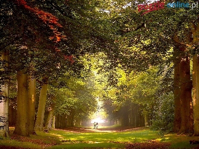 Drzew, Para, Park, Aleja, Spacerująca