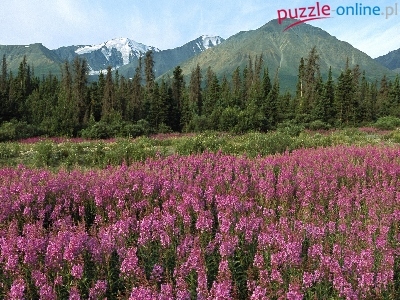 Puzzle Drzewa, Kwiaty, Łąka, Góry