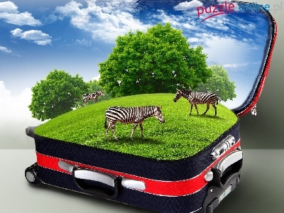 Puzzle Drzewa, Zebry, Łąka, Walizka
