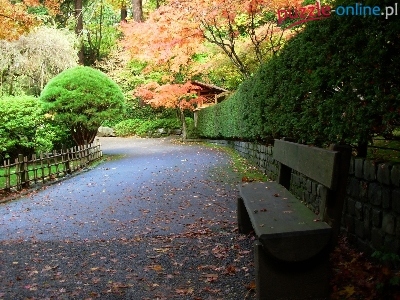 Drzewa, Alejka, Park, Ławeczka, Krzewy