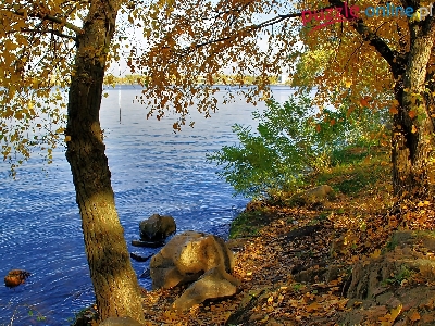 Puzzle Drzewa, Jezioro, Brzeg, Głazy