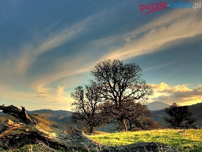 Puzzle Drzewa, Góry, Chmury, Pień