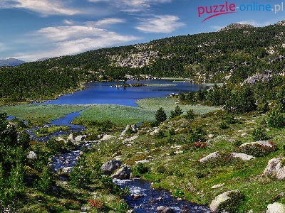 Drzewa, Francja, Kamienie, Pireneje, Jezioro, Rzeka, Góry, Lac des Bouillouses
