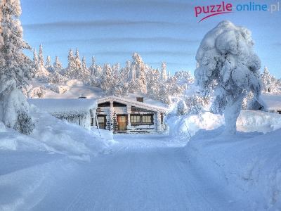 Puzzle Drzewa, Droga, Domek, Śnieg