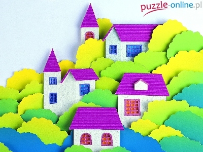 Puzzle Drzewa, Miasteczko, Domy, Wycinanki