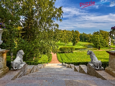 Petersburg, Drzewa, Lwy, Pawłowsk, Schody, Rosja, Park, Donice