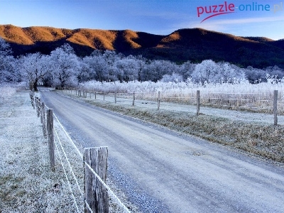 Puzzle Drzewa, Góry, Droga, Zima