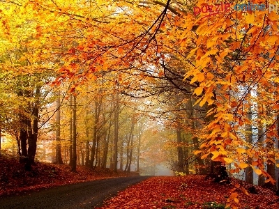 Drzewa, Jesień, Droga, Liście