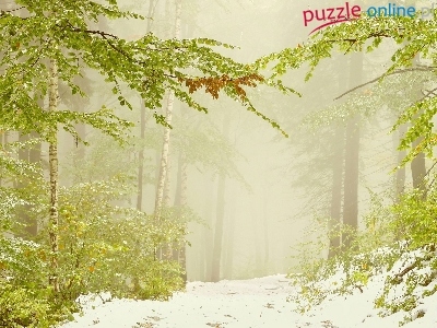 Puzzle Śnieg, Droga, Drzewa, Mgła