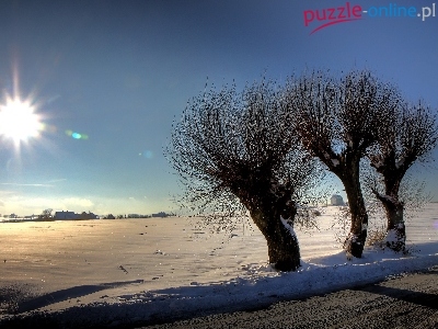 Puzzle Drzewa, Śnieg, Droga, Słońce