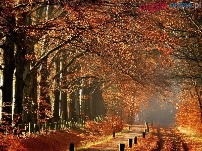 Drzewa, Jesień, Park, Droga, Mgła