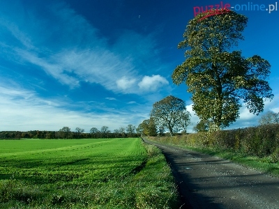 Puzzle Drzewa, Pole, Droga, Krzewy