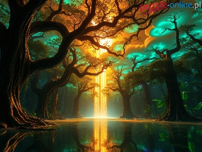 Drzewa, Sceniczny, Krajobraz, Przyroda, Światło, Woda, Fantasy, Natura, Odbicia