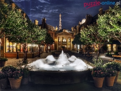 Puzzle Drzewa, Hotel, Fontanna, Francja