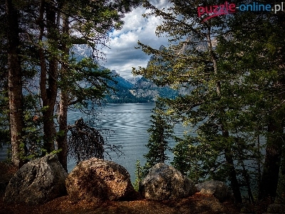 Puzzle Drzewa, Jezioro, Głazy, Góry