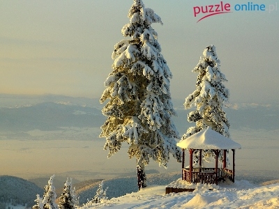 Puzzle Drzewa, Altanka, Góry, Zima