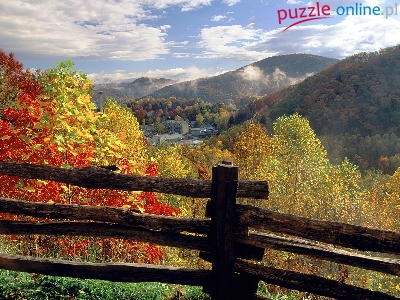 Puzzle Drzewa, Jesień, Góry, Płotek
