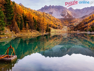 Jezioro, Drzewa, Góry, Jesień, Odbicie
