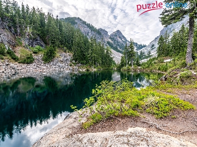 Puzzle Drzewa, Rzeka, Góry, Odbicie