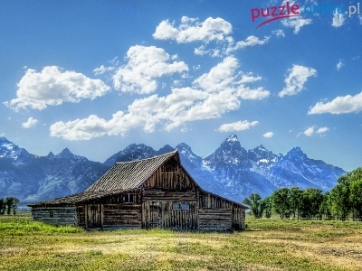 Puzzle Drzewa, Szopa, Góry, Chmury