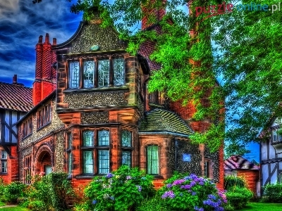 Puzzle Drzewa, Domy, HDR, Krzewy