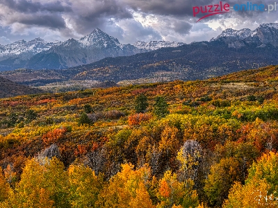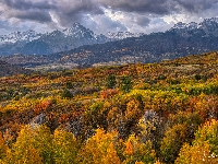 Drzewa, Góry, Kolorowe, Stany Zjednoczone, San Juan Mountains, Jesień, Kolorado