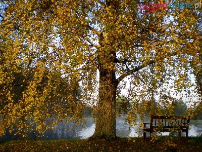 Ławka, Jesień, Rzeka, Drzewa, Liście