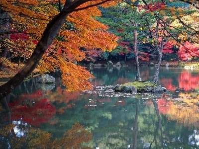Puzzle Drzewa, Jesień, Jeziorko, Odbicie
