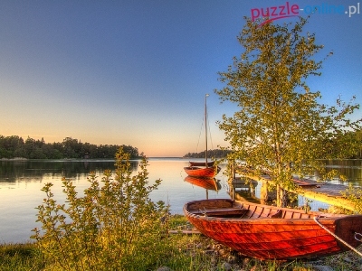Puzzle Drzewa, Niebo, Jeziorko, Łódki