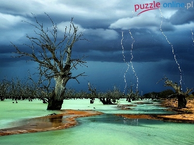 Puzzle Drzewa, Błyskawice, Jezioro, Pioruny