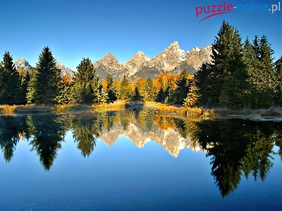 Puzzle Drzewa, Góry, Jezioro, Iglaste