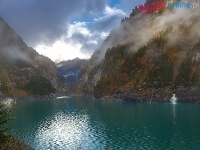 Puzzle Drzewa, Góry, Jezioro, Mgła