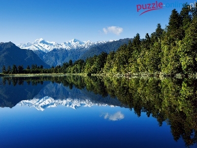 Puzzle Drzewa, Góry, Jezioro, Odbicie