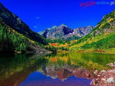 Drzewa, Roślinność, Góry, Jezioro, Kamienie