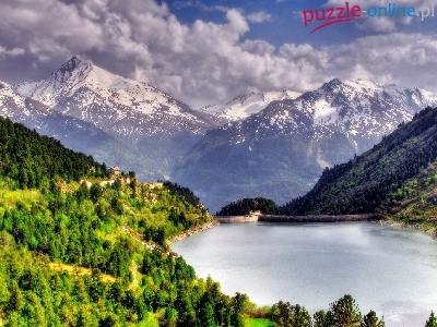 Puzzle Drzewa, Góry, Jezioro, Zapora