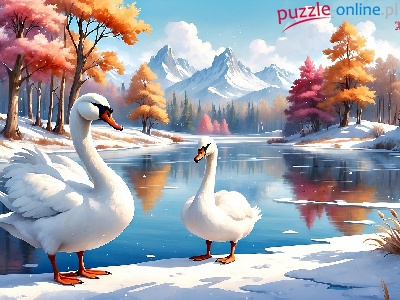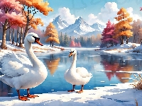 Puzzle Jezioro, Ptaki, Łabędzie, Drzewa