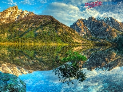 Puzzle Drzewa, Skały, Jezioro, Odbicie