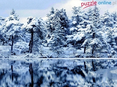 Puzzle Zima, Jezioro, Drzewa