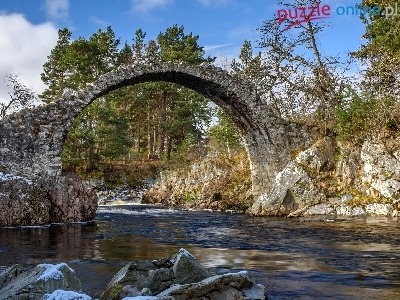 Kamienie, Drzewa, Szkocja, Rzeka Dulnain, Most Carrbridge