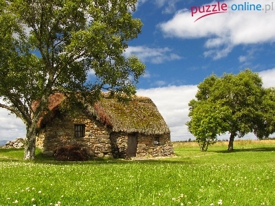 Puzzle Drzewa, Dom, Kamienie, Trawy