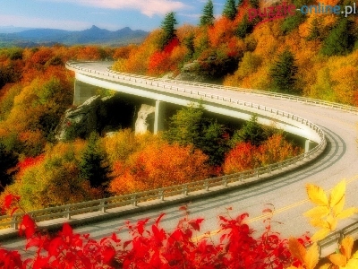 Puzzle Drzewa, Góry, Kolorowe, Droga