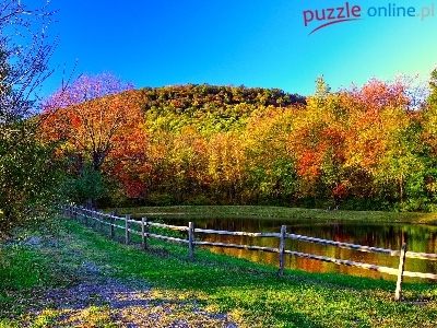 Puzzle Drzewa, Jesień, Kolorowe, Jezioro