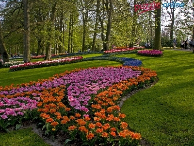 Puzzle Drzewa, Park, Kwiaty, Trawniki