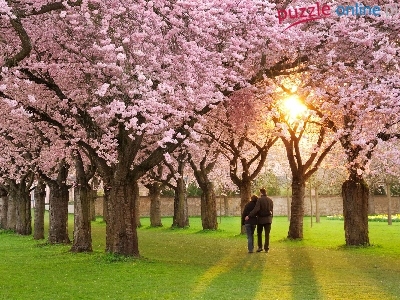 Puzzle Drzewa, Para, Kwitnące, Zieleń