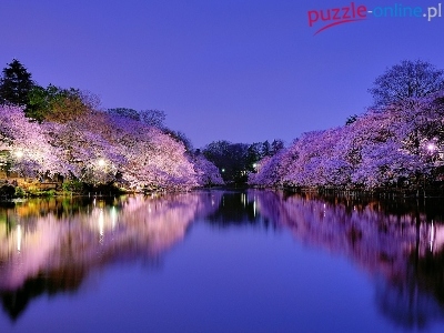 Puzzle Drzewa, Rzeka, KwitnÄ…ce, Budynki