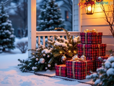 Ośnieżone, Zima, Lampa, Boże Narodzenie, Prezenty, Taras, Drzewa