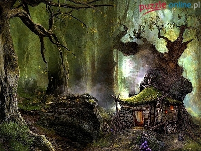 Puzzle Drzewa, Domek, Las, Fantasy