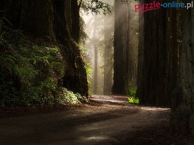 Stan Kalifornia, Drzewa, Droga, Las, Stany Zjednoczone, Park Narodowy Redwood, Sekwoje